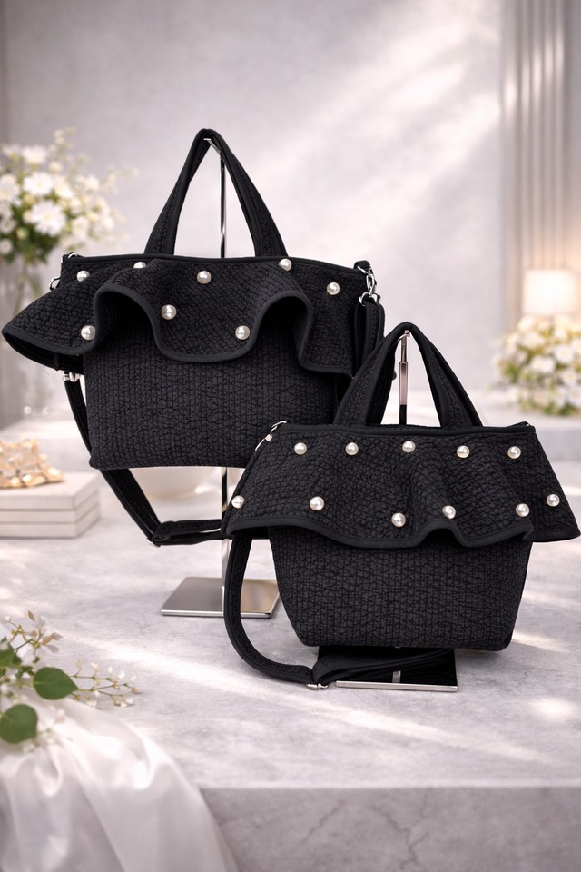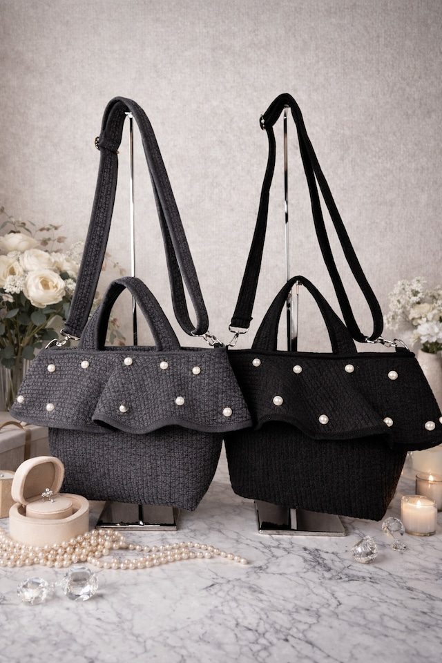 # [Sサイズ] パールフリルヌビバック(ファスナー付、ショルダー用紐付き) 新作のフリルヌビバックが登場‼️ 魅力的なフリルデザインと華やかなパールが特徴のフリルヌビバックは、日常使いから特別なシーンまで幅広く活躍するアイテムです。デートやお出かけ、パーティーなど、さまざまな場面であなたのスタイルを引き立てます! ショルダー用紐付きで2wayタイプで軽量設計なので持ち運びも楽々。さらに、洗濯可能なので清潔感を保つのが簡単で、毎日の生活にピッタリです! 2ウェイタイプ! カラーも多彩で、あなたの個性に合った一色が見つかることでしょう! ◾️サイズ: 横幅上30 横幅下20×高さ20×底幅12 ショルダー紐最短67cm 最長132cm ◾️素材: ヌビキルト コットン100% ◾️カラー: ブラック、チャコールグレー ◾️生産国: 韓国 ◾️仕様: 内側ポケット付き、ファスナー付き、ショルダー用紐付き フリルヌビバックは、デザインと機能性を兼ね備えた優れたアイテムで、どんなシーンでも活躍します。耐久性のある素材を使用しているため、長くご愛用いただけます。また、ファスナー付きで安心してアイテムを収納できるのも嬉しいポイントです! ✅洗濯はヌビを裏返してネットに入れ、丸洗いが可能です。素敵なフリルヌビバックを手に入れて、毎日をもっと特別に彩ってみませんか! ◆注意点 ・ハンドメイドのため、同じ製品でも若干形状等が異なる可能性が御座います。 ・モニタの発色により、実際の色味と若干異なる可能性が御座います。