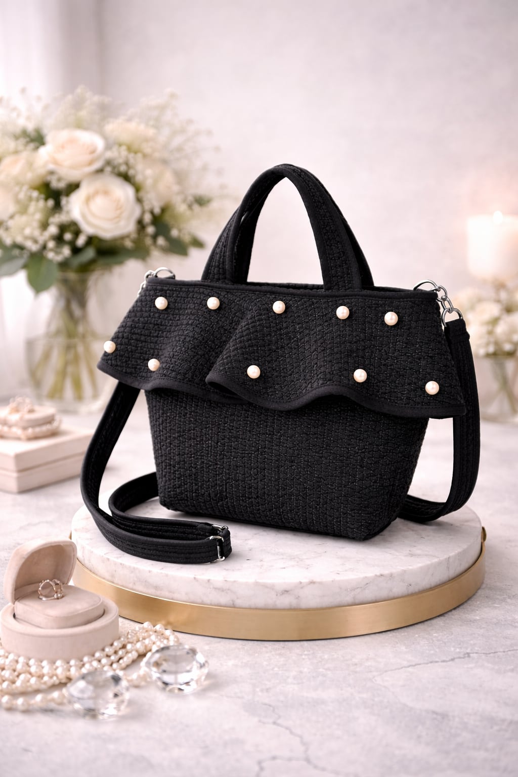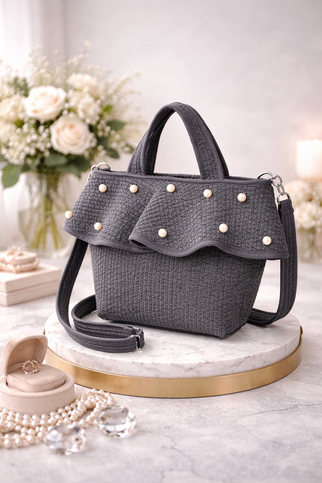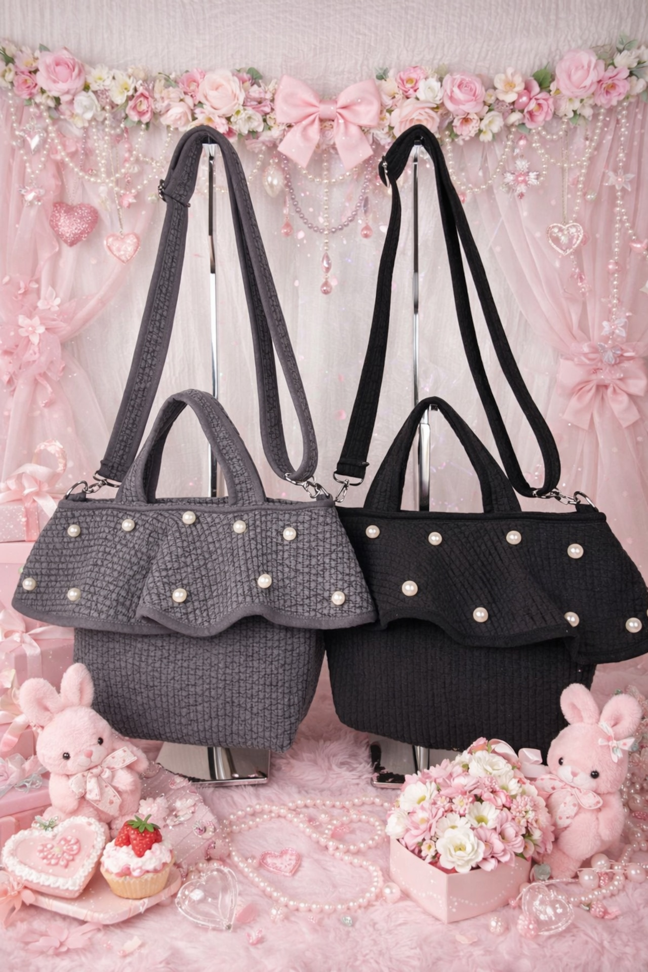 魅力的なフリルデザインと華やかなパールが特徴のフリルヌビバックは、日常使いから特別なシーンまで幅広く活躍するアイテムです。デートやお出かけ、パーティーなど、さまざまな場面であなたのスタイルを引き立てます!