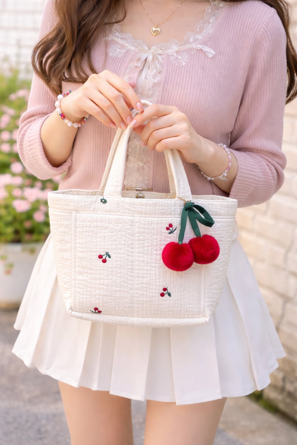 かわいらしいさくらんぼの刺繍が施されたヌビバックは、日常使いから特別なシーンまで幅広く活躍するアイテムです。デートやお出かけさまざまな場面であなたの個性を引き立てます!サブバックとしても可愛い。
