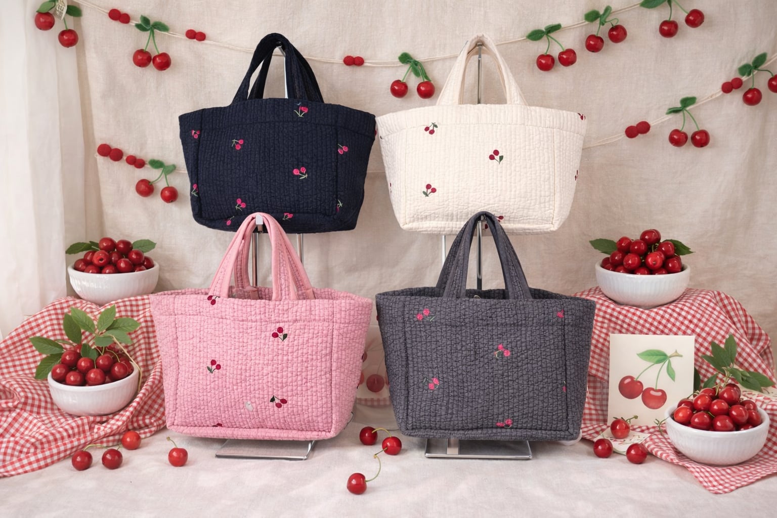 定番のさくらんぼ柄刺繍ヌビバック‼️