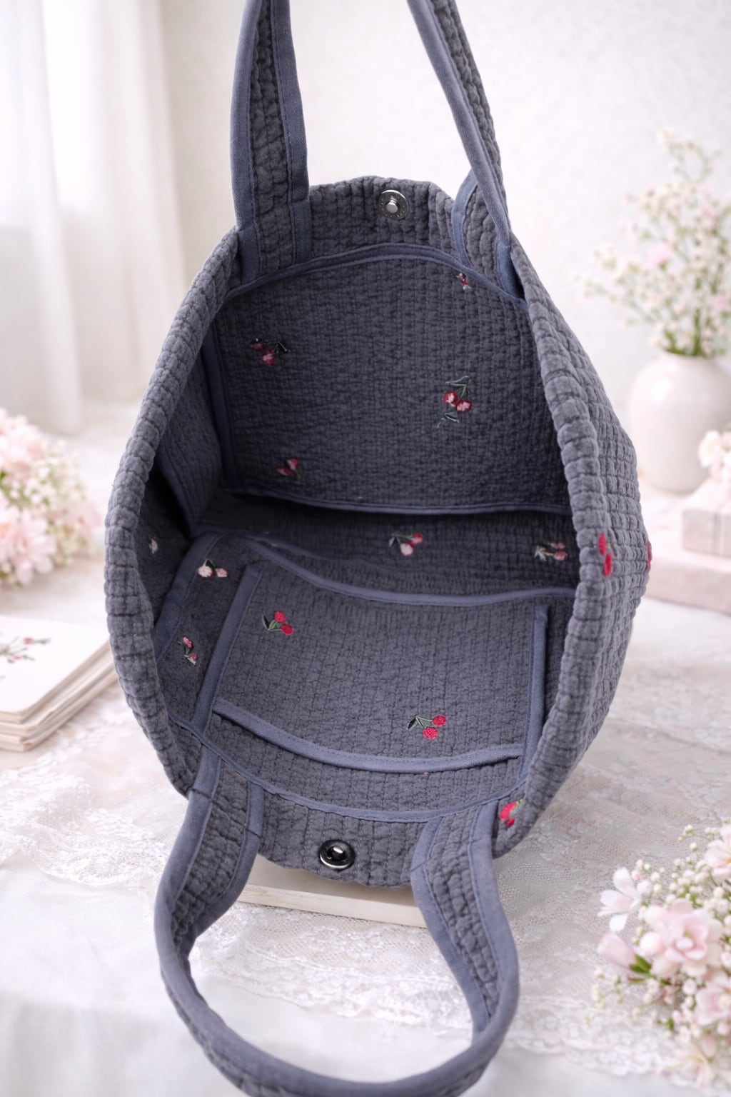 ✅洗濯はヌビを裏返してネットに入れ、丸洗いが可能です。素敵なさくらんぼ柄刺繍のヌビバックを手に入れて、毎日をもっと特別に彩ってみませんか!