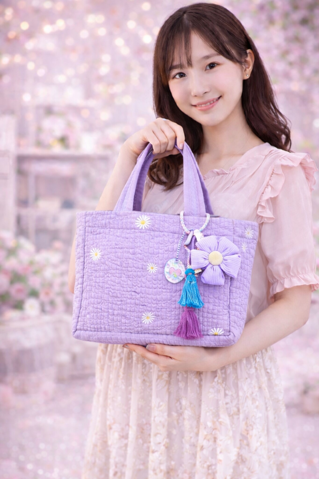 かわいらしいデイジーのデザインが施されたこのヌビバックは、日常使いはもちろん、特別なシーンでも幅広く活躍します。デートやお出かけ、友人とのランチなど、あなたのスタイルを華やかに彩ります!サブバックとしてもかわいく、どんなシーンでも手放せません。