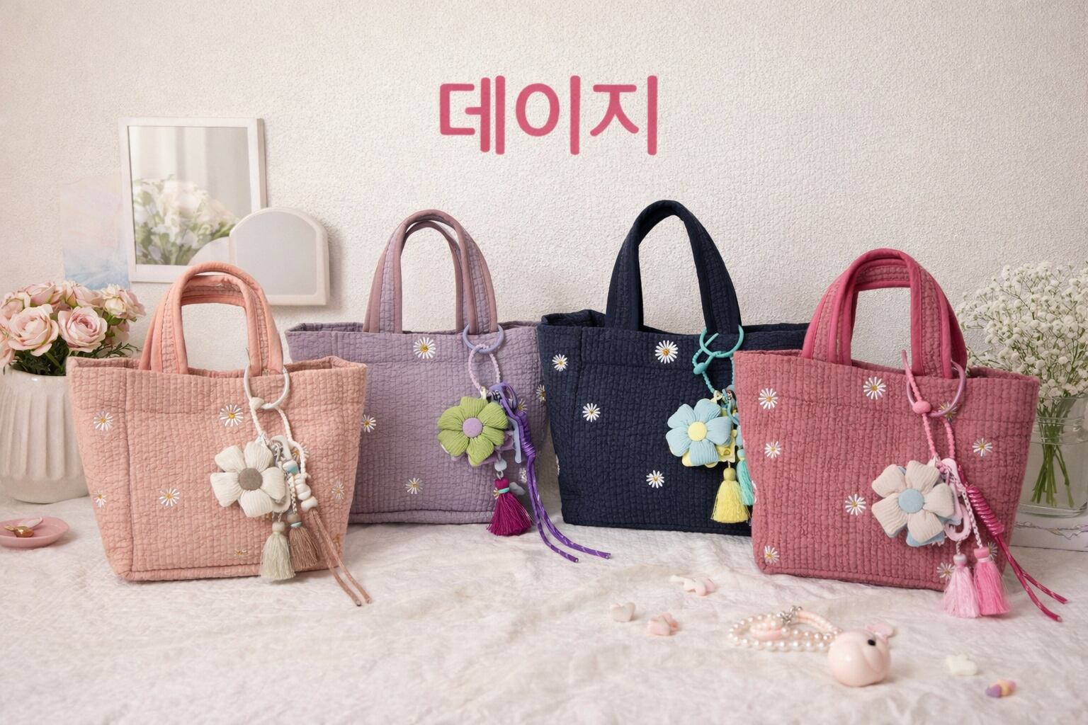 デイジー花柄ヌビバックは、デザイン性と機能性を兼ね備えた素晴らしいアイテムです。耐久性のある素材を使用しているため、長くご愛用いただけます。かわいらしいデザインと実用性が見事に融合しています。