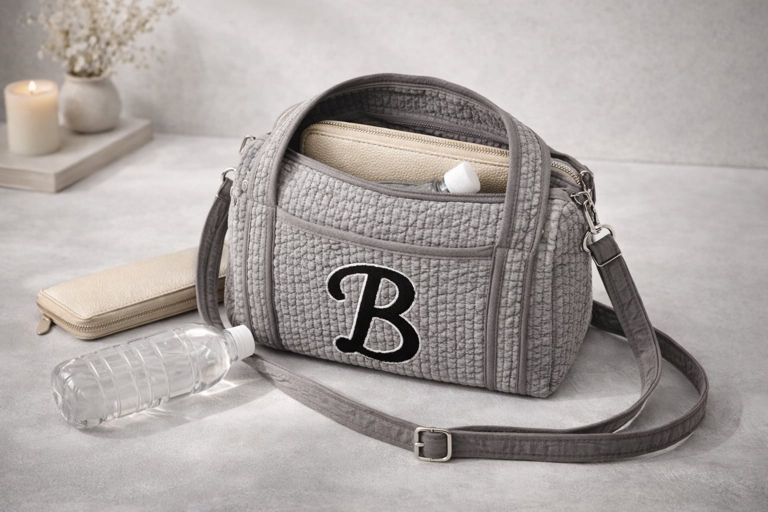 長財布やペットボトルもしっかり入る実用サイズ。