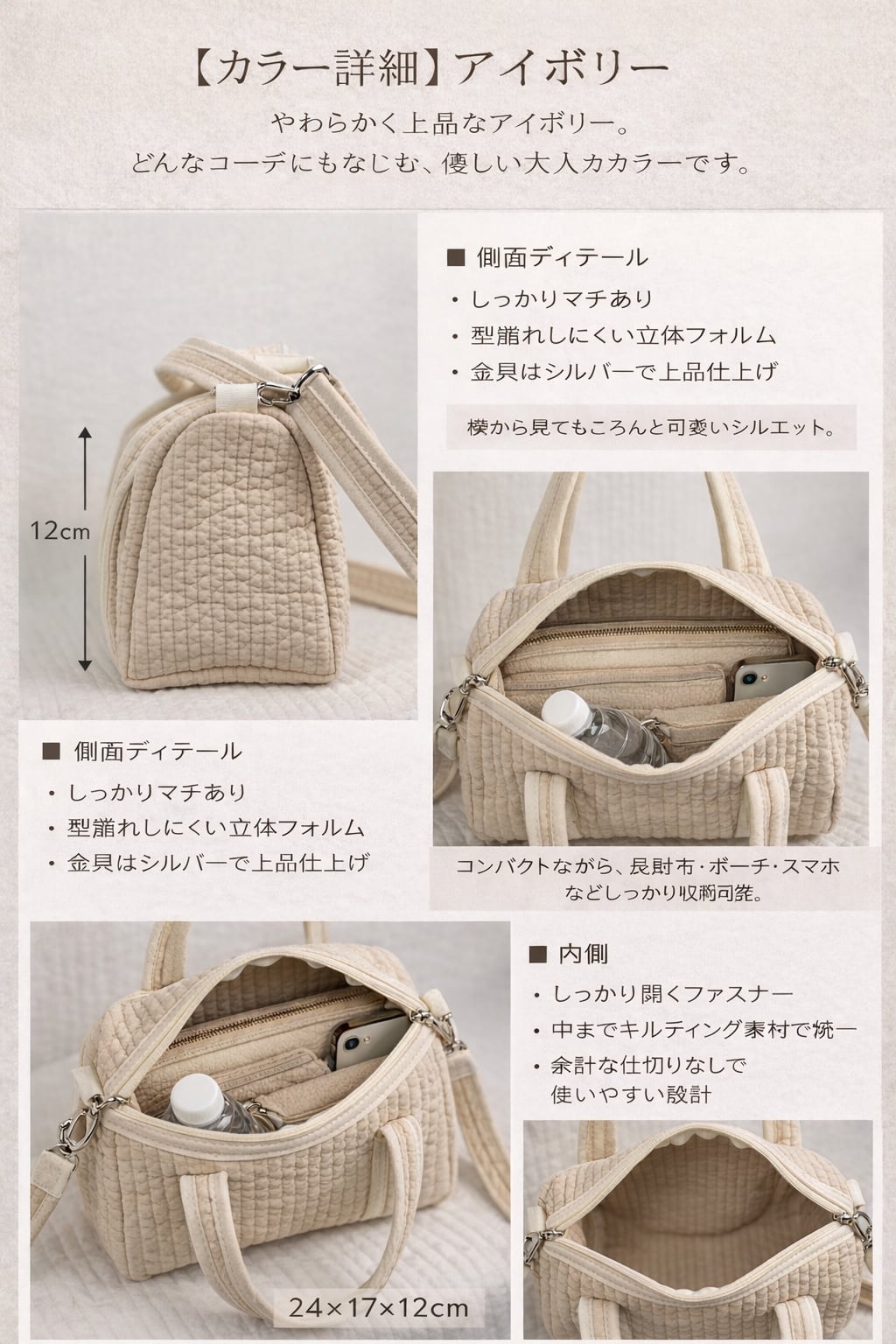 ふんわりとしたキルティングの立体感が魅力です。