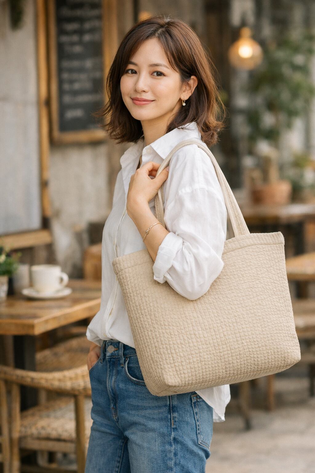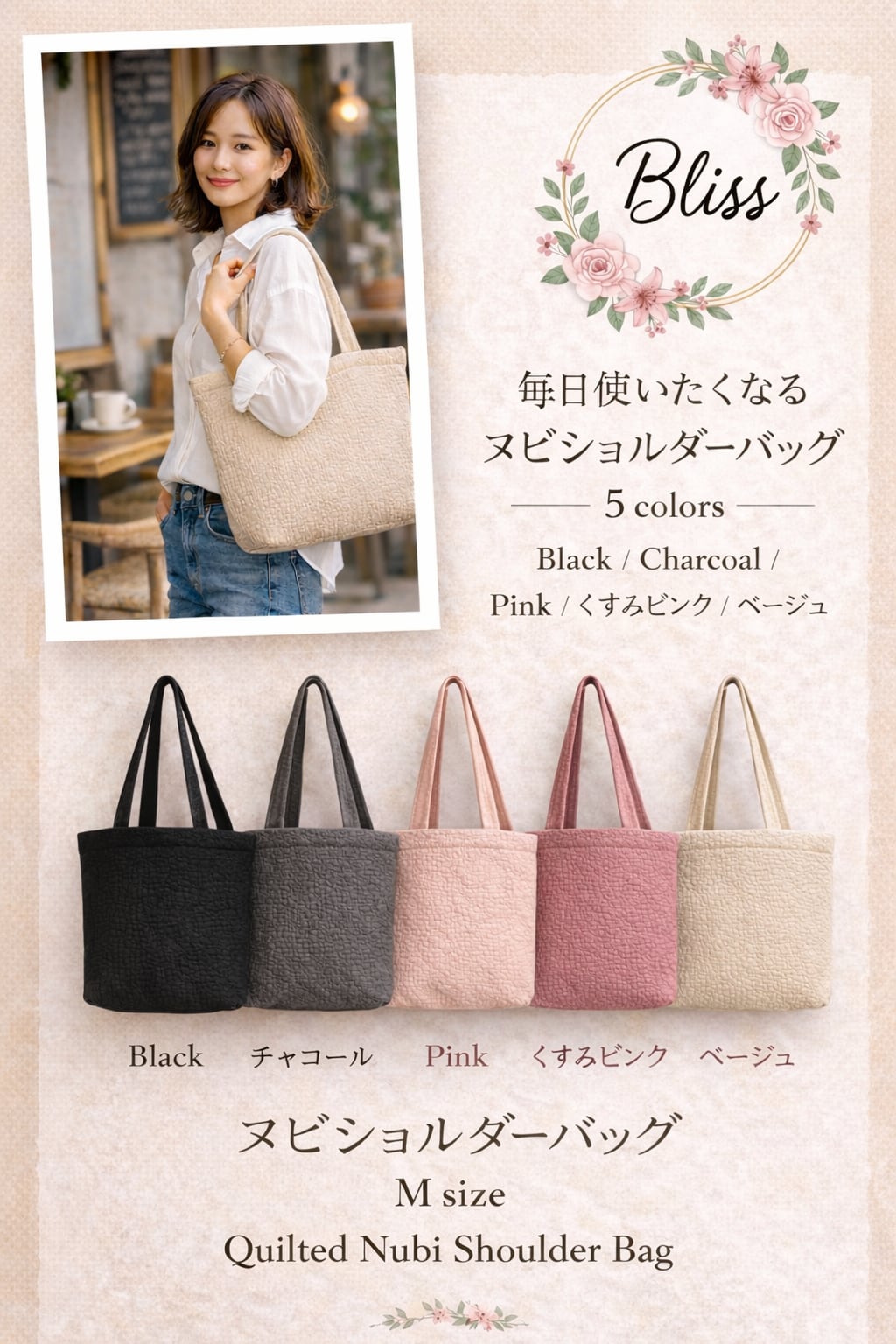 軽くてやわらかなヌビ生地で、毎日使いやすいバッグです。