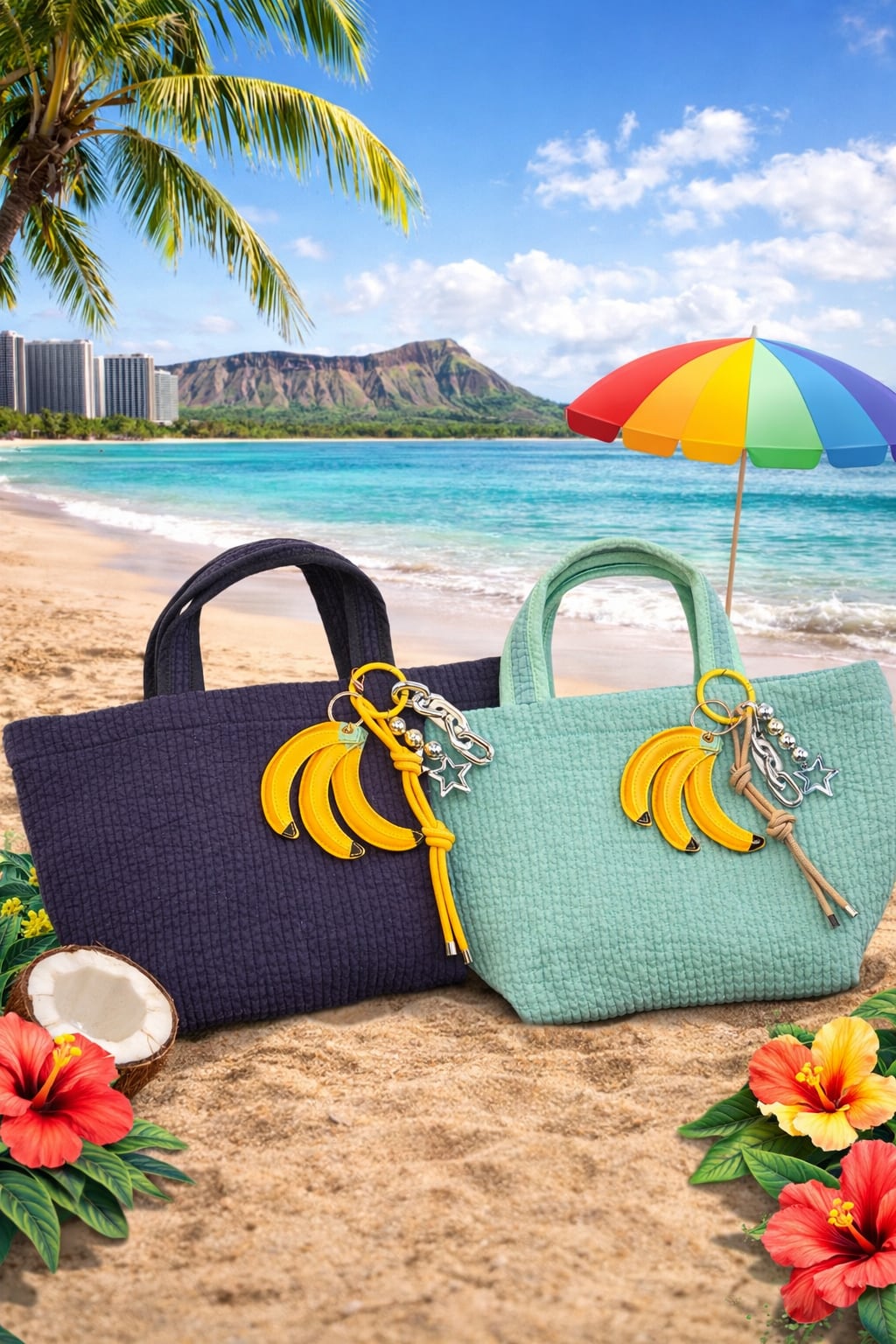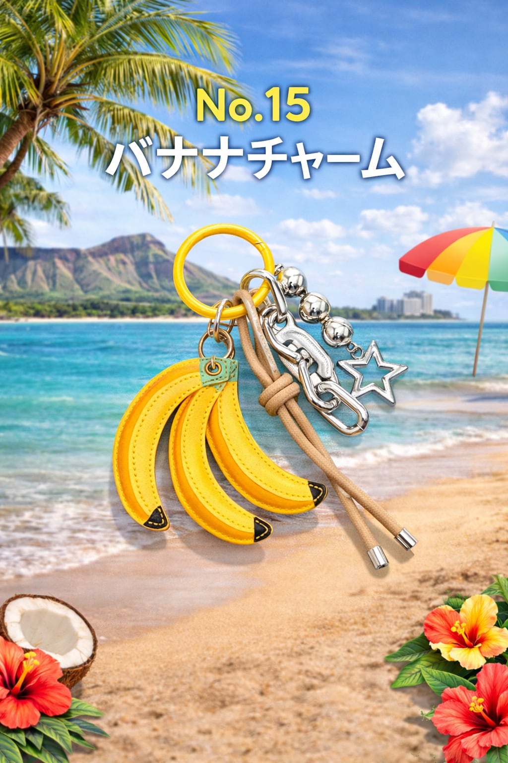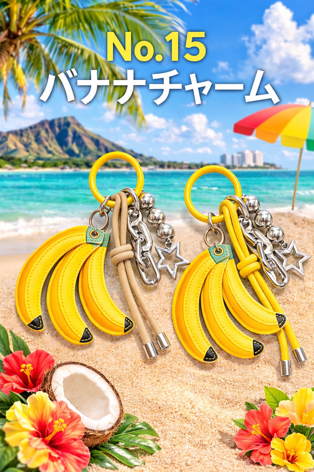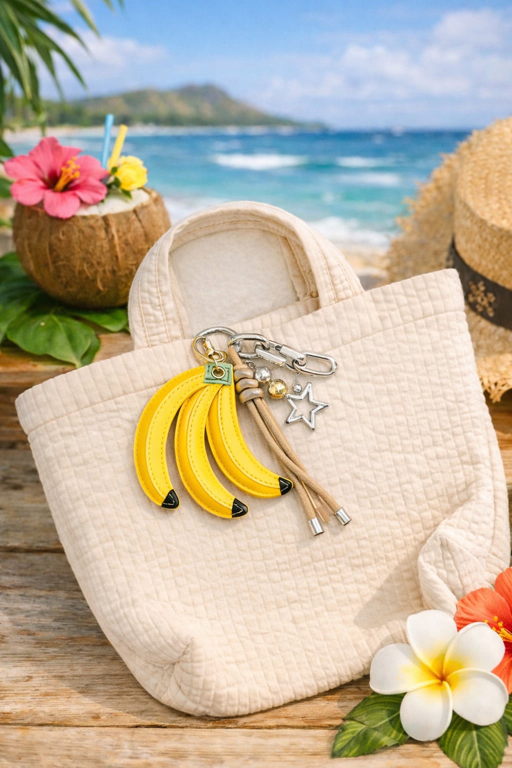 トロピカルなバナナモチーフのバッグチャーム