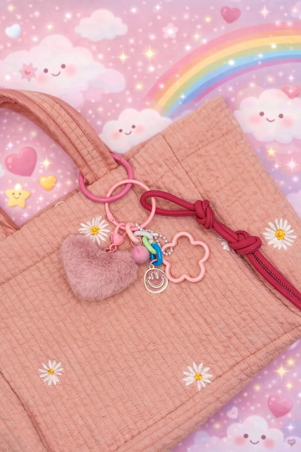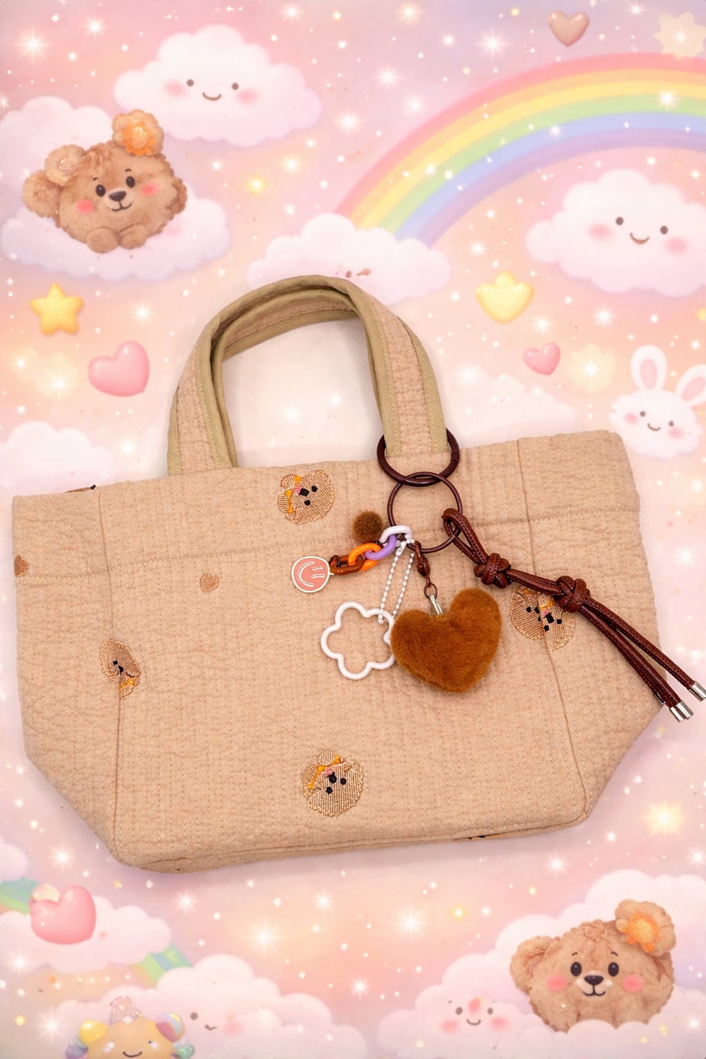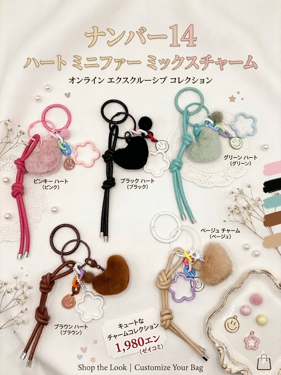 ふわふわのミニハートファーとカラーパーツを組み合わせた