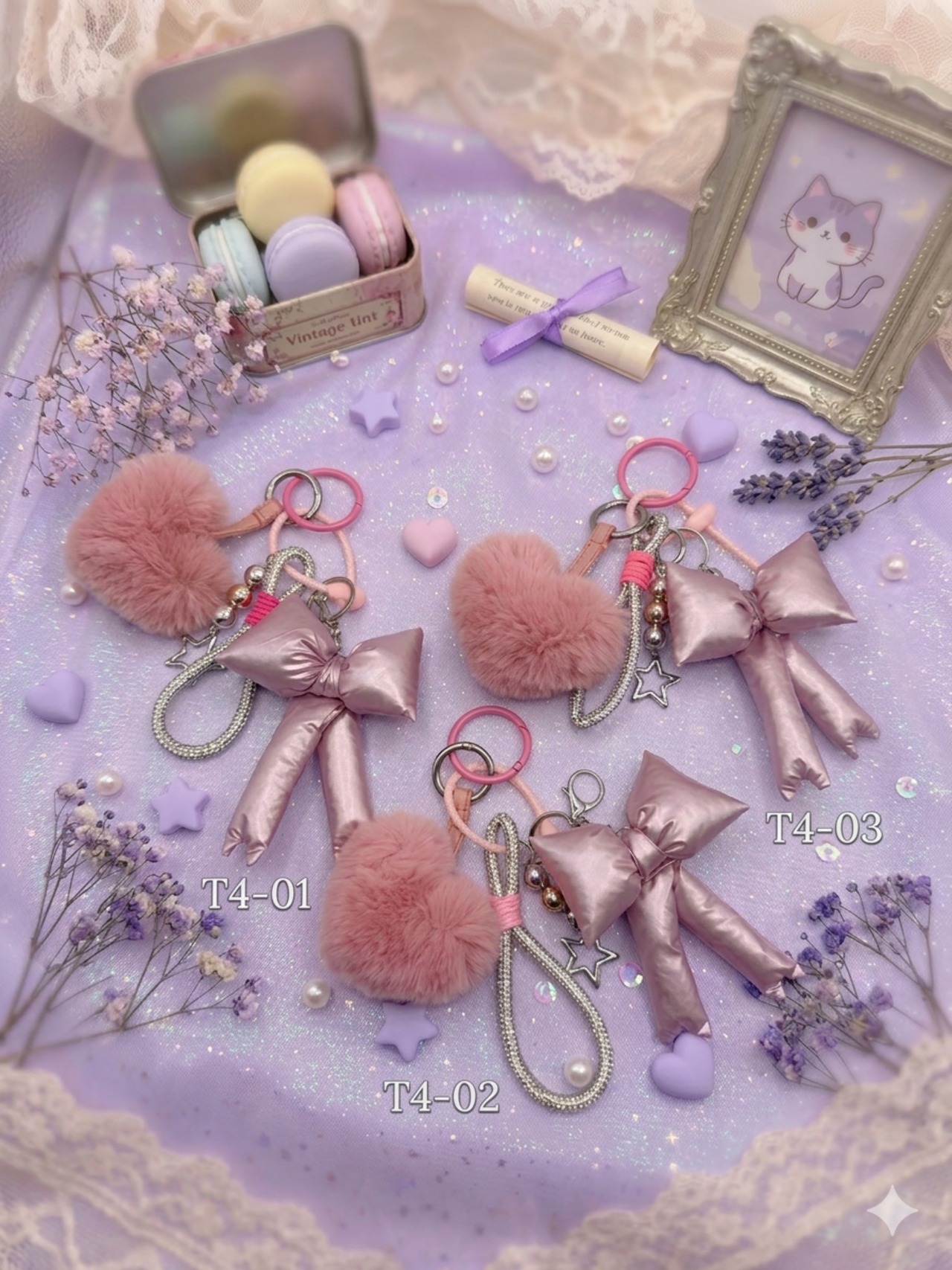 No.T4 ぷくぷくリボンチャーム ピンク系