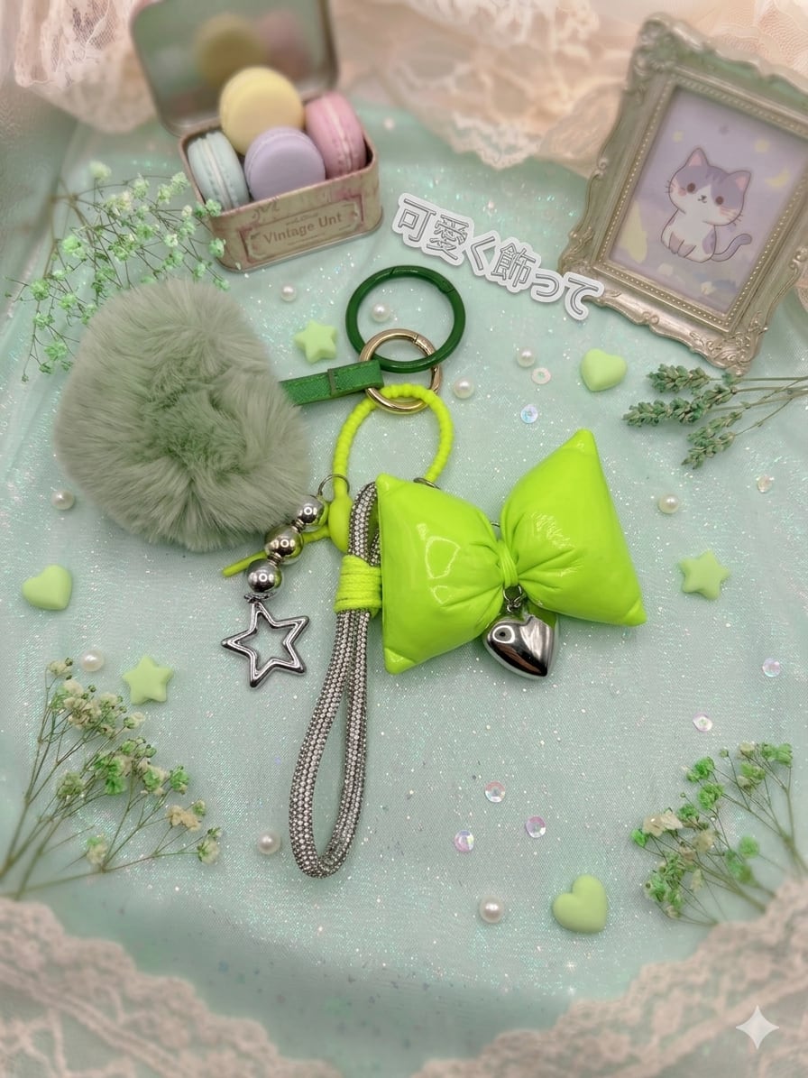 No.T4 ぷくぷくリボンチャーム[パステルグリーン系]