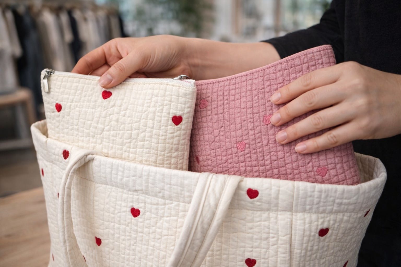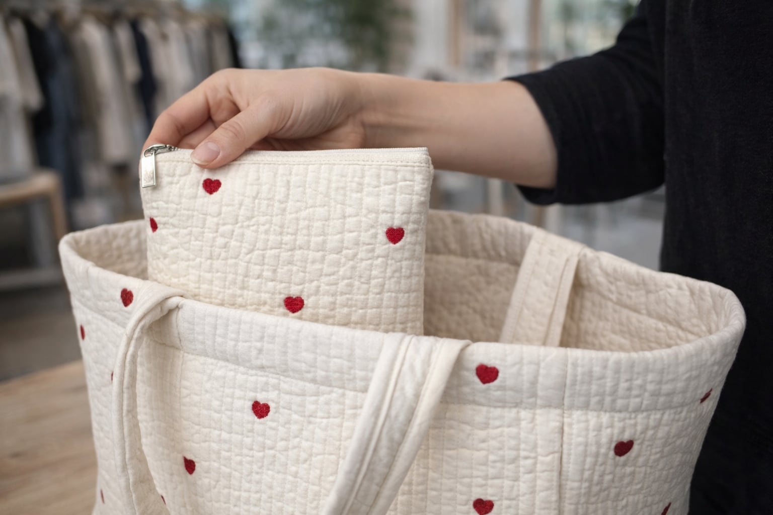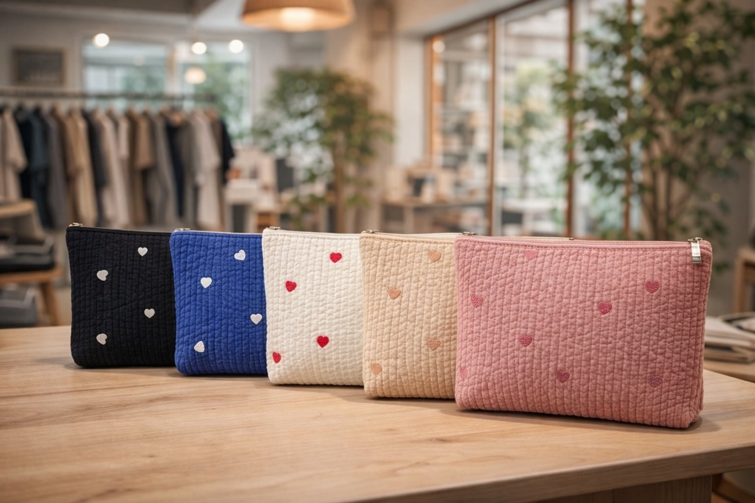 大人可愛いハート刺繍ポーチ。